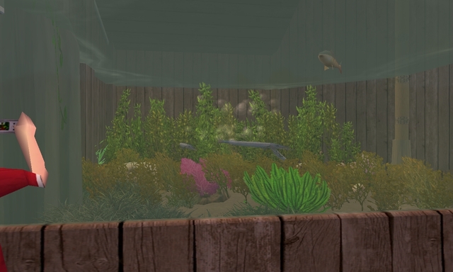Aan de rechterkant bevind zit het onderwater deel van onze alligators, die worden gescheiden van de orinocodolfijnen met deze planten, wortels, etc. Kleine visjes vinden het heerlijk om hierin te zitten: