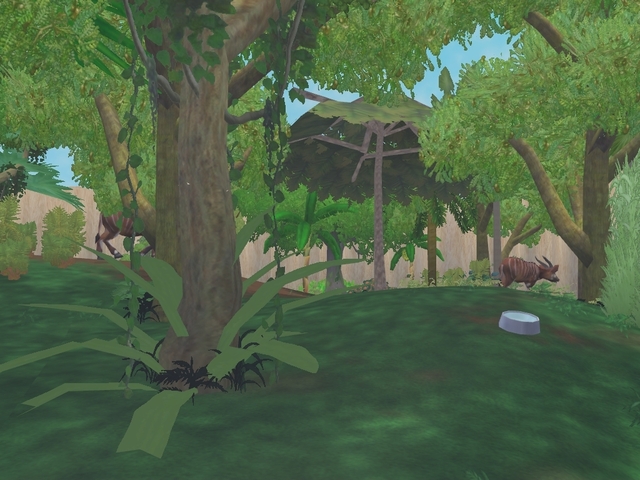 Links zie je het verblijf van de gekko’s, rechts van de sabeloryxen en in het midden van de bongo’s. Daar gaan we nu naar toe