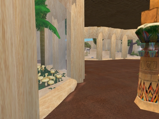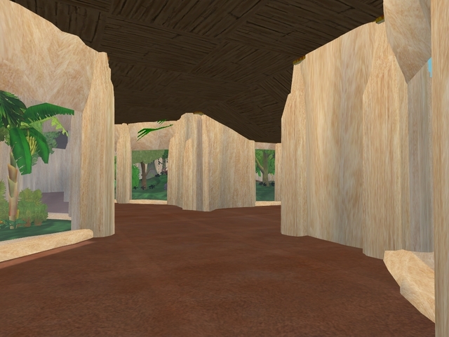 We lopen nu verder langs de toiletten richting het verblijf in het midden.