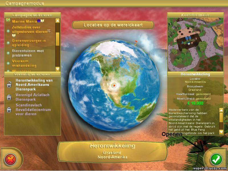 Jij kan een andere nemen. Open dan de dierentuin door op het groene knopje te drukken met het vinkje erin.